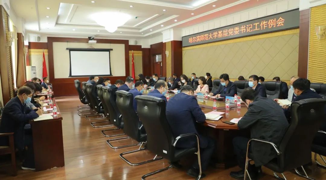 (董天时/文)6月1日上午,学校在行知楼0107会议室召开基层党委书记工作例会。党委副书记、工会主席郭砾,党委副书记李庆霞,纪委书记、党委常委、省监委驻哈尔滨师范大学监察专员姜国庆,党委常委、统战部部长张志宏出席会议,各基层党委书记,党委办公室,党委组织部,党委宣传部负责人参加会议。会议由李庆霞主持。