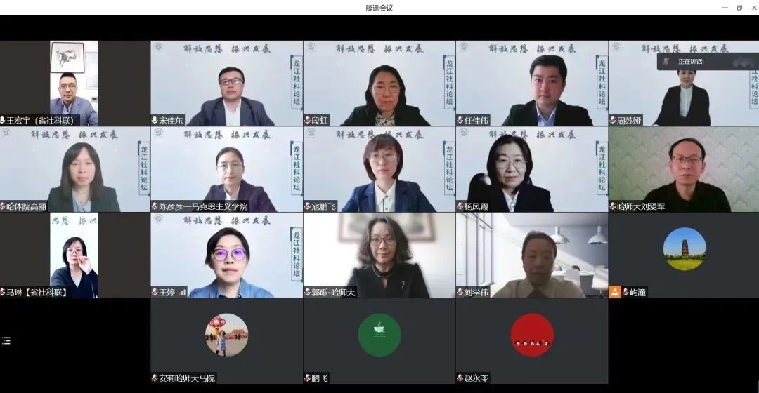 5月7日下午,为深入学习贯彻中国共产党黑龙江省第十三次代表大会精神,“解放思想 振兴发展”系列龙江社科论坛第七场——“解放思想与全面建设社会主义现代化新龙江”学术研讨会在线召开。黑龙江省社科联党组成员、副主席王宏宇,哈尔滨师范大学党委副书记、工会主席、省社科联兼职副主席郭砾,黑龙江省社科联学会工作部部长、一级调研员马琳,哈尔滨师范大学马克思主义学院院长、二级教授、博士生导师段虹出席研讨会。来自全省社科联系统、省级社会组织、高校、科研院所、媒体和期刊单位近300人参加会议。研讨会由哈尔滨师范大学马克思主义学院党委书记宋佳东主持。