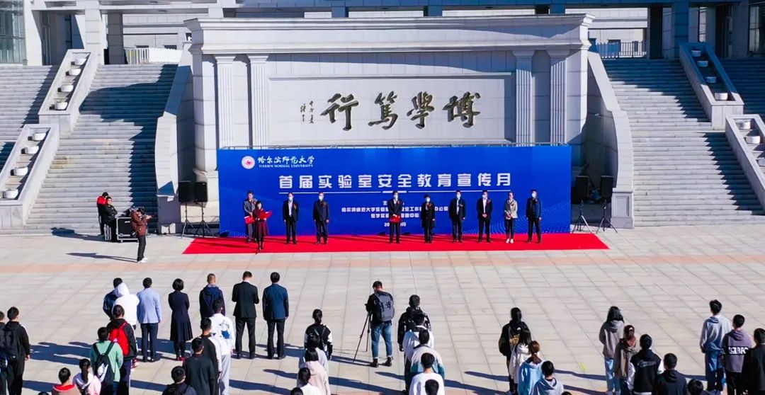 (沙永群/文)为提高师生安全意识,进一步加强学校实验室安全管理,以实际行动迎接党的二十大胜利召开。9月20日上午,哈尔滨师范大学2022年实验室安全教育活动月启动仪式在松北校区行知楼南广场举行。校党委书记孙立军出席仪式并讲话,校党委副书记李庆霞、副校长臧淑英,党委常委、副校长张喜田,相关单位负责人和学生代表参加启动仪式。活动由实验室技术安全委员会办公室主任吕树臣主持。